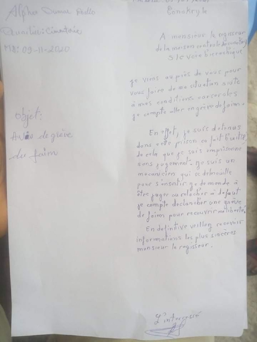 Plusieurs détenus à la maison centrale de Conakry ont entamé ce lundi, 5 juillet 2021, une grève collective de la faim. A travers des correspondances individuelles ‘’avis de grève de la faim’’ qu’ils ont adressé au régisseur de ladite prison, ces prisonniers dénoncent leur détention prolongée sans jugement.