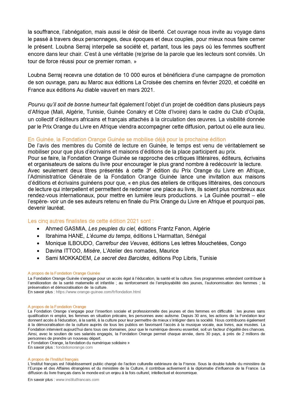 L’article Loubna Serraj, lauréate du 3è Prix Orange du Livre en Afrique est apparu en premier sur Mediaguinee.org.