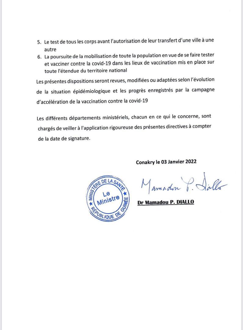 Face à la propagation de la pandémie Covid-19 avec l’arrivée du variant Omicron, le gouvernement guinéen de la transition, à travers le Ministère de la Santé a pris le taureau par les cornes. Le ministre de la Santé Dr Mamadou Péthè Diallo a annoncé lundi dans un communiqué que désormais pour accéder aux départements ministériels, services publics, entreprises, lieux de spectacles et de loisirs, il faut se munir du pass sanitaire ou d’un résultat de test négatif datant de moins 7 jours…