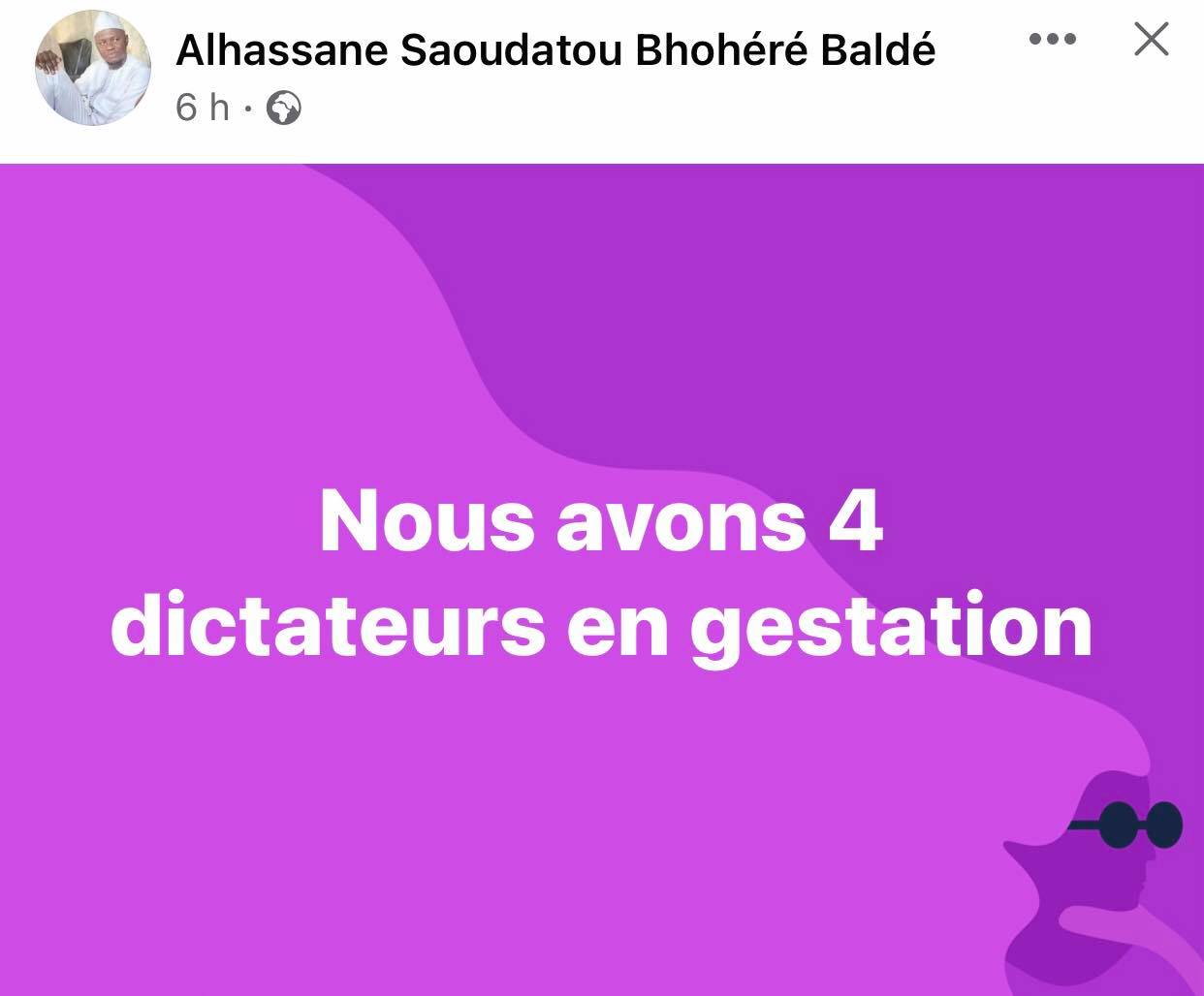 D’abord c’est le général des jeunes Younoussa Baldé lui-même qui donne le ton en écrivant ceci : « On peut nous priver de parole à une radio, ou dans une émission, mais pas à toutes les radios ou dans toutes les émissions. » Il ne se limite pas là, une heure après cette publication, il renchérît « En temps de guerre, on te prie de parler au nom de ton institution, de ton parti ou de ton mouvement ; en temps de paix, on te rappelle les textes qui régissent ton organisation et qui doit parler », écrit-il.