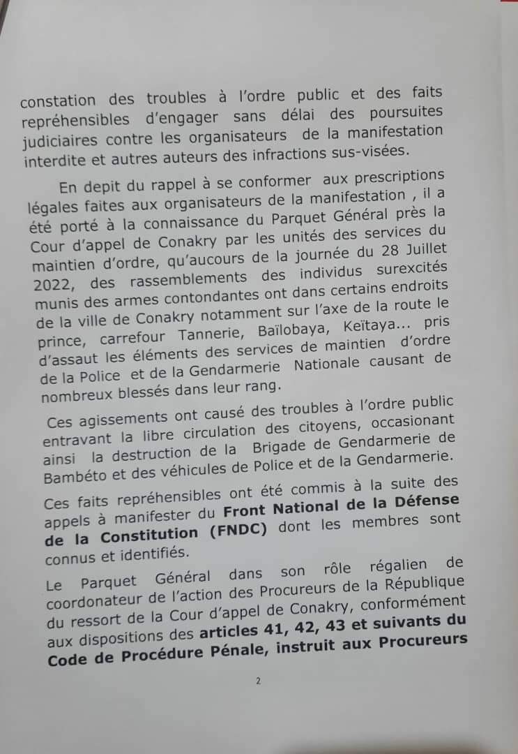 L’article Marche non autorisée. Le Parquet général de Conakry demande de poursuivre Foniké Manguè et Cie est apparu en premier sur Guinee7.com.