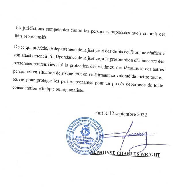 Une déclaration non sans menaces de la coordination nationale de la jeunesse du Konia signée de Ansoumane Damaro Camara provoque l’ire du ministre de la Justice et des droits de l’homme. Alphonse Charles Wright qui a dénoncé avec force les propos contenus dans ladite déclaration a ordonné lundi dans un communiqué au parquet général de traduire devant les juridictions compétentes « les personnes supposées avoir commis ces faits répréhensifs »