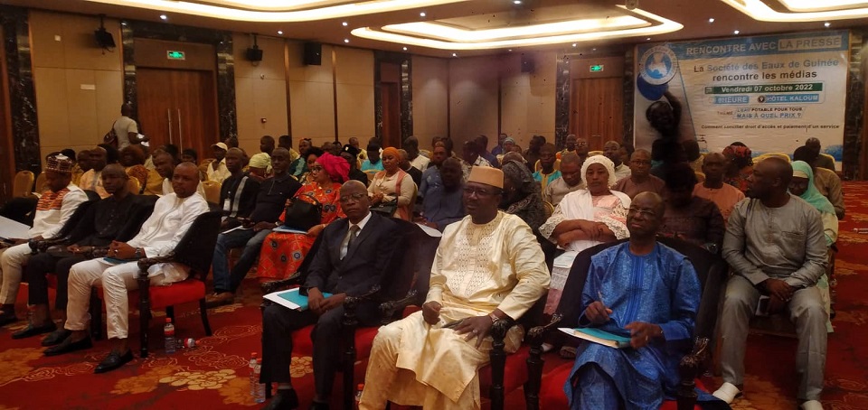 Entouré de ses proches collaborateurs, le Directeur général de la Société des Eaux de Guinée (SEG-SA), Aboubacar Camara a échangé avec les médias publics et privés ce vendredi 7 octobre 2022, dans un réceptif hôtelier de la place.