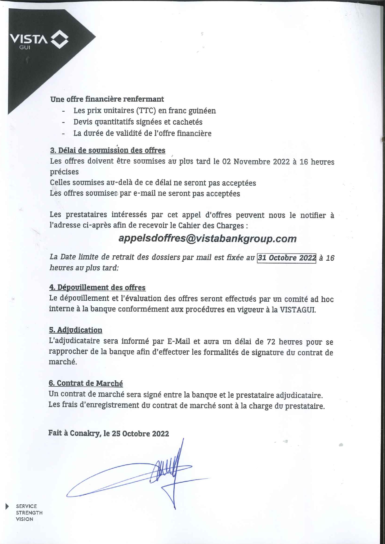 L’article Avis d’appel d’offre pour les travaux de réaménagement des agences de la VISTAGUI est apparu en premier sur Mediaguinee.org.