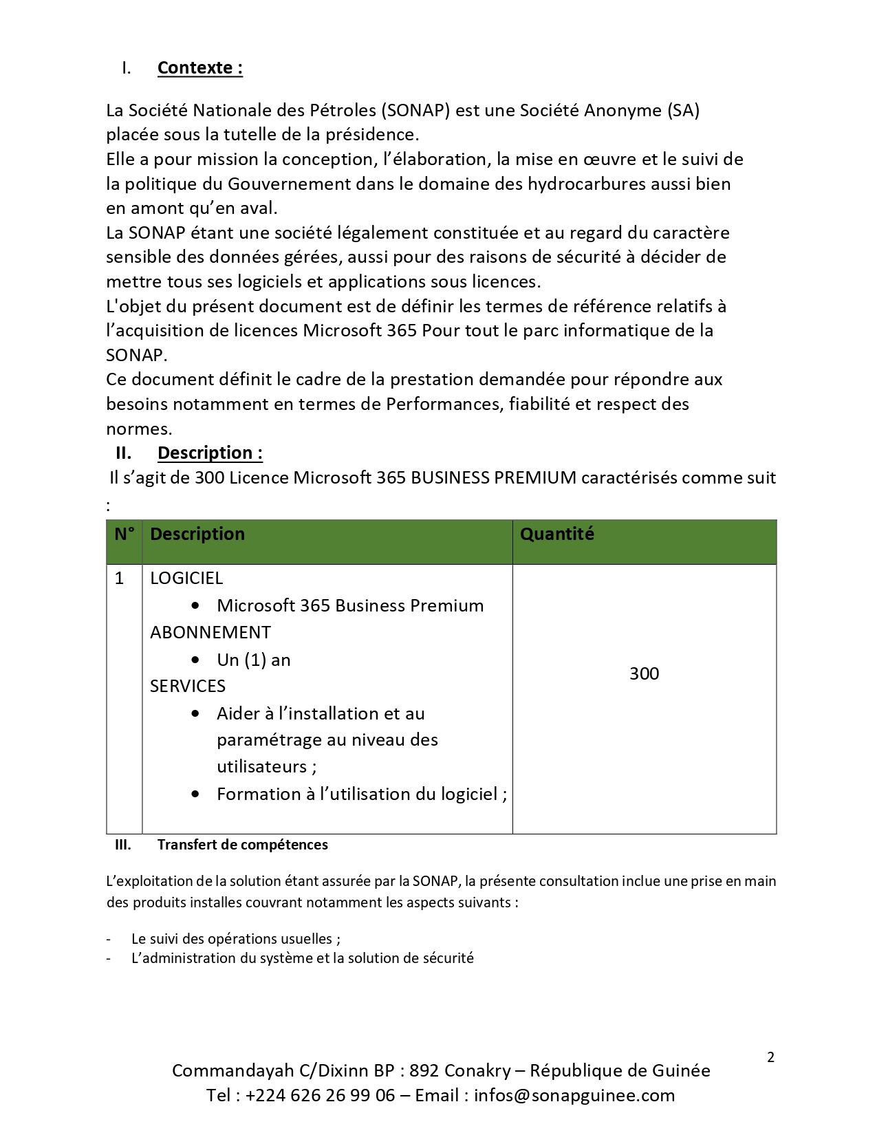 L’article Avis d’appel d’offre de la Société Nationale des Pétroles (SONAP) : acquisition et déploiement de licences Microsoft 365 est apparu en premier sur Mediaguinee.org.