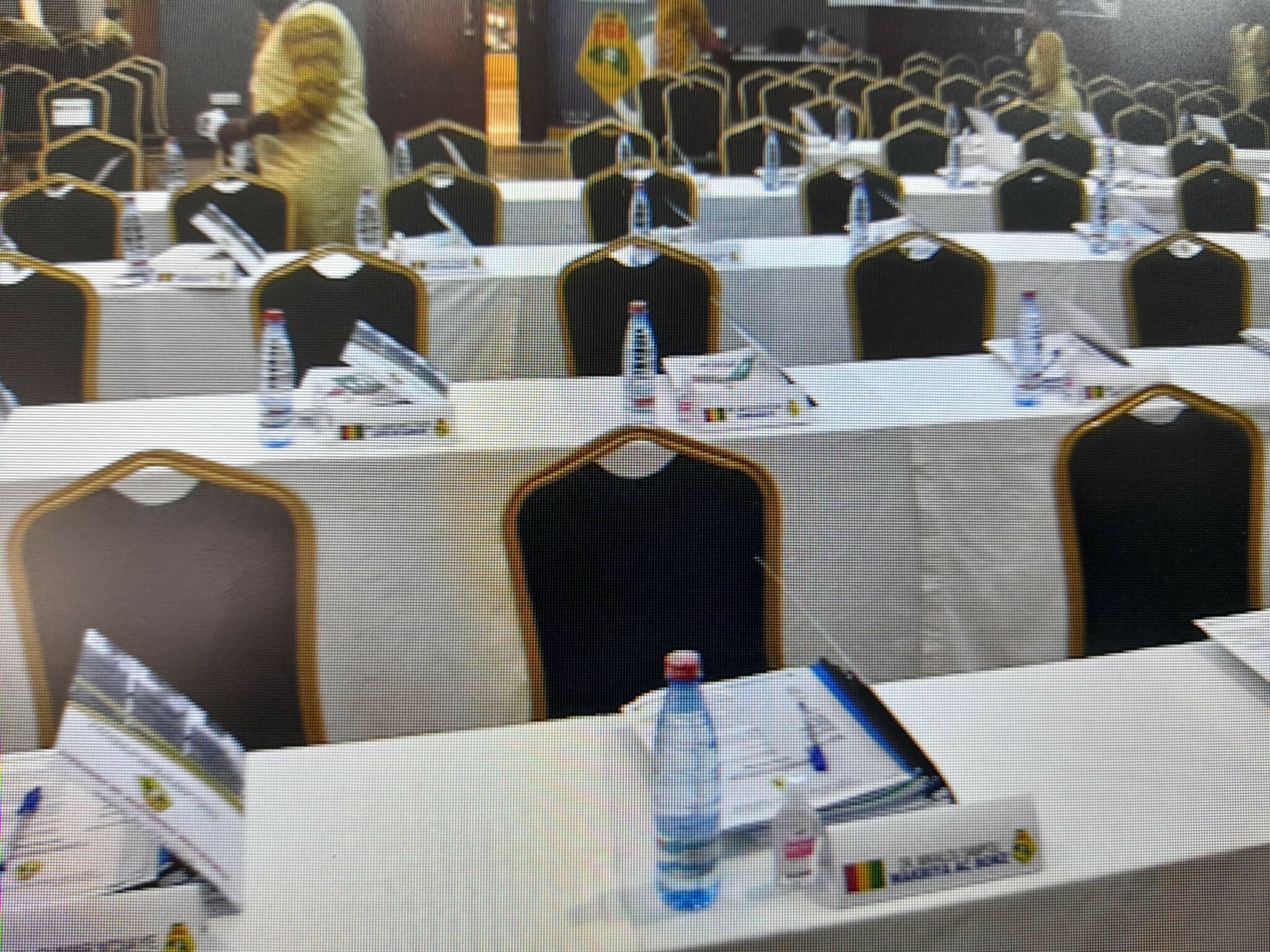 CONAKRY- Les membres statutaires étaient prêts à voter ce mardi 18 mai pour élire un nouveau président de la Fédération Guinéenne de Football. Malheureusement, la FIFA a douché ces membres statutaires en demandant à la commission électorale de surseoir au congrès, car ayant constaté le violations des statuts de la Feguifoot. Tôt ce matin, notre rédaction a fait un tour à l’hôtel qui héberge les votants, et la salle était prête à les recevoir.